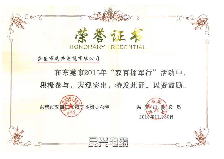双百拥军行荣誉证书